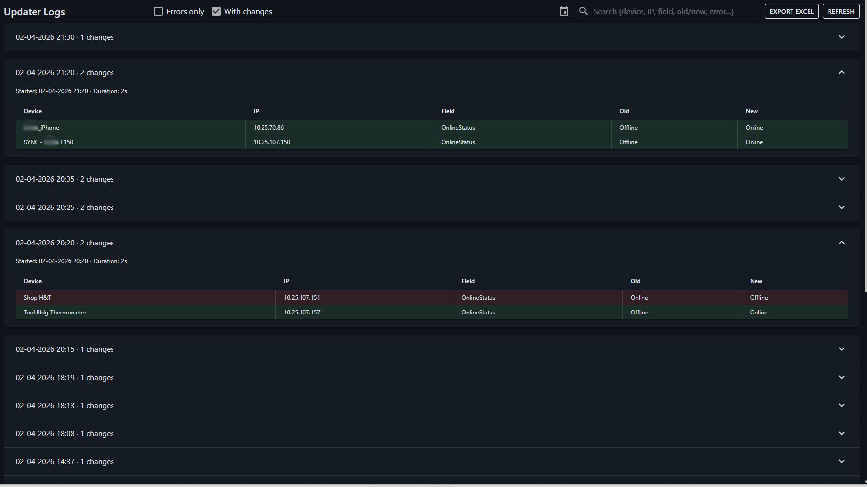 Each time the updater runs, a log is recorded to record any changes, if any. The updater log view allows users to see what changes occured and when.